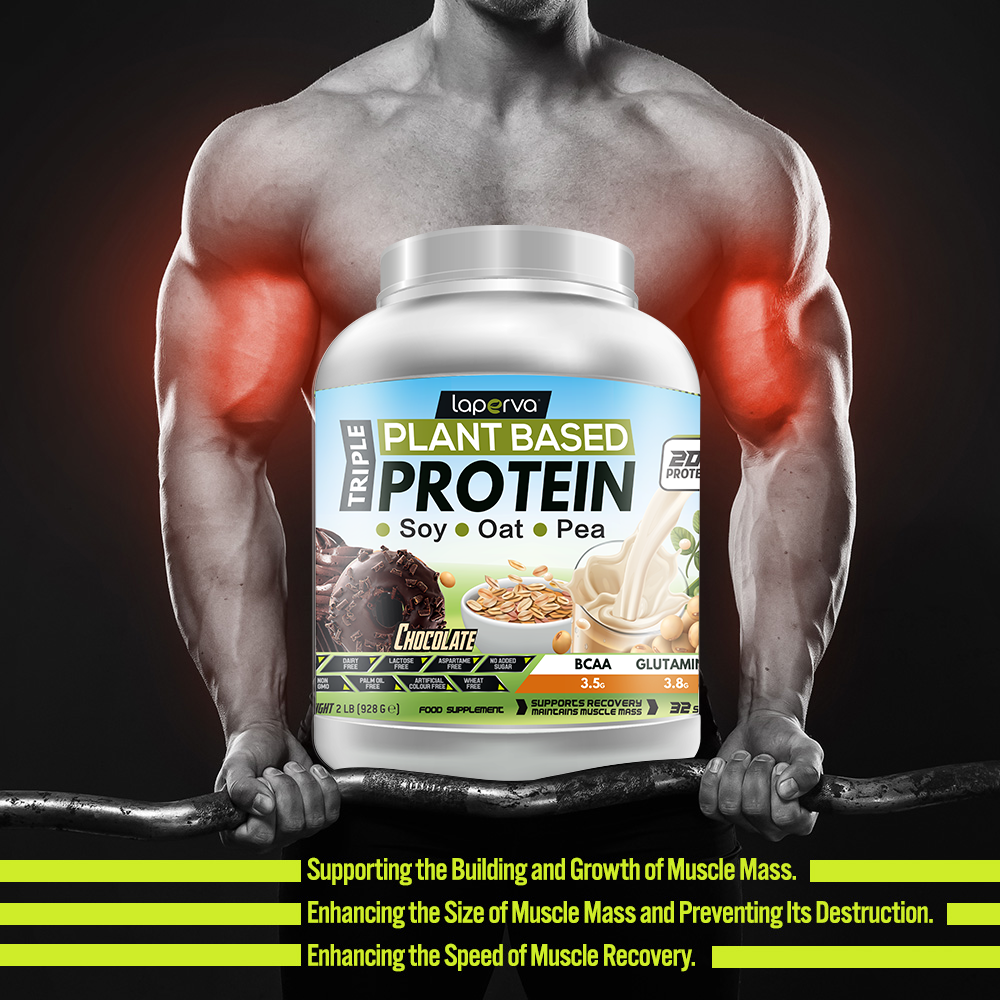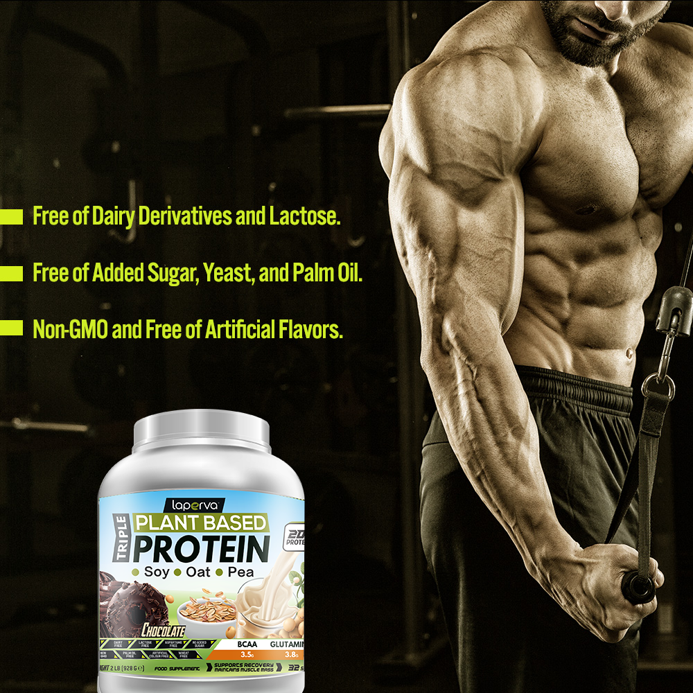 Laperva Triple Vegan Protein, Chocolate, 2 LB, Maintains Muscles Mass, Supports Recovery